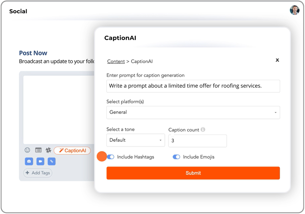 AI-generated social content: with a simple prompt to write about “xyz,” ThryvAI’s caption generator creates customizable content, complete with hashtags and emojis, that is automatically designed for each social network.